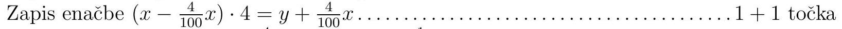 answer:1. We consider that the brothers together have x+y=312 euros. From the problem statement, we write the equation left(x-frac{4}{100} xright) cdot 4=y+frac{4}{100} x. In the equation, we remove the parentheses 4 x-frac{4}{25} x=312-x+frac{1}{25} and rearrange it 96 x+24 x=7800. We calculate x=65. Then we calculate y=247. We write the answer: Anže had 65 euros, and Uroš had 247 euros.We write the relationship x+y=312 or x=312-y ldots ldots ldots ldots ldots ldots ldots ldots ldots ldots ldots ldots ldots ldots ldots ldots ldots ldots ldots ldots ldots ldots ldots ldots ldots ldots ldots ldots ldots ldots ldots ldots ldots ldots ldots ldots ldots ldots ldots ldots ldots ldots ldots![](https://cdn.mathpix.com/cropped/2024_06_07_7bf3e9b12130e254269ag-06.jpg?height=57&width=1636&top_left_y=1822&top_left_x=210)![](https://cdn.mathpix.com/cropped/2024_06_07_7bf3e9b12130e254269ag-06.jpg?height=54&width=1636&top_left_y=1869&top_left_x=207)![](https://cdn.mathpix.com/cropped/2024_06_07_7bf3e9b12130e254269ag-06.jpg?height=57&width=1636&top_left_y=1919&top_left_x=210)Answer . .........................................................................................................
